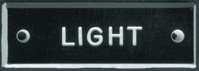 White lettering on black background except where noted. Beveled. All identi-plates are -1/2" x 1-1/2" in size.