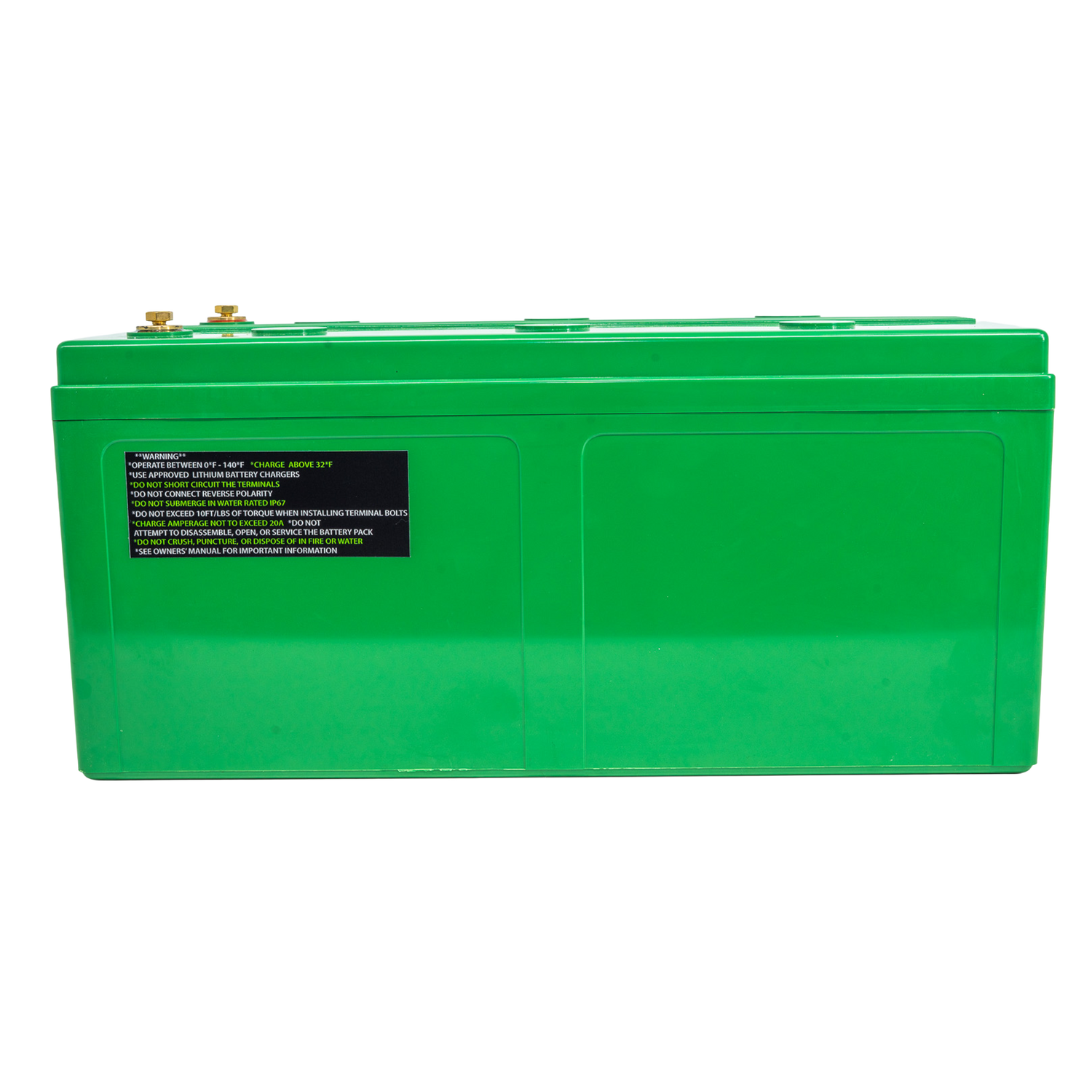 - Install the battery in a secure, well-ventilated location and follow all mounting and wiring guidelines from your equipment manufacturers.