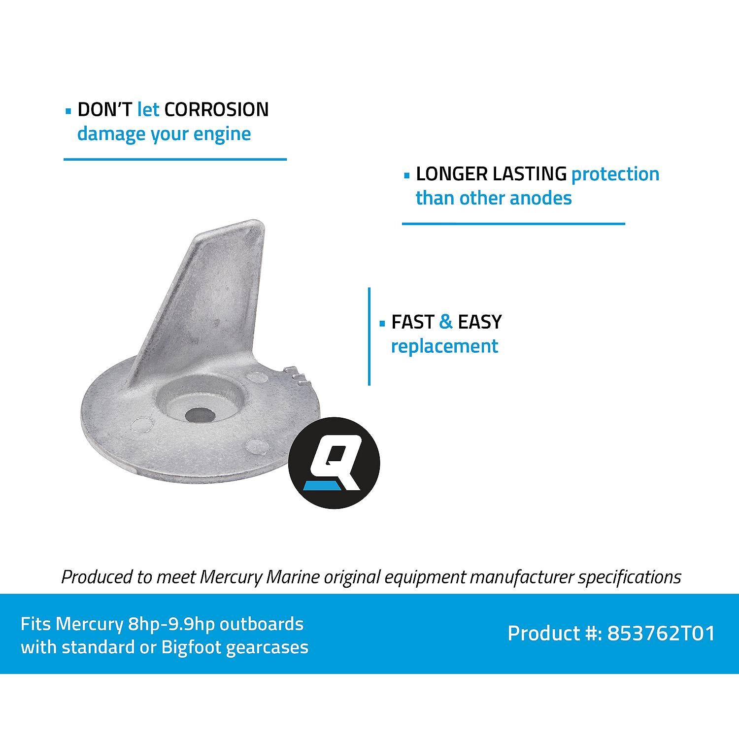 This OEM anode is built from marine-grade aluminum that’s specifically formulated for Mercury’s alloys. It fits perfectly, performs consistently, and is proven to protect in all types of water. When you’re out there every weekend, reliability isn’t optional — it’s essential. With OEM, you know your engine’s protection is as dependable as your next start.