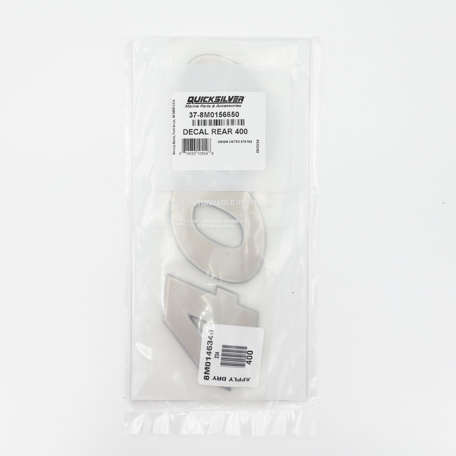 Mercury - 400 Verado Rear Decal- 37-8M0156650 is backordered and will ship as soon as it is back in stock.