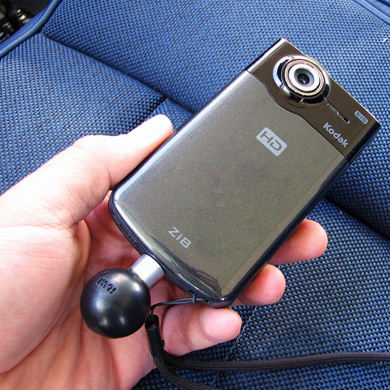 The RAM-B-237U universal camera and camcorder base consists of a B size 1" rubber ball connected to a 1/4"-20 camera thread. The male 1/4"-20 threaded steel stud will connect to any standard female thread found on digital cameras, camcorders, and other devices.