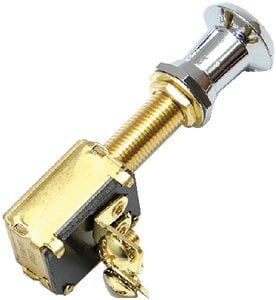Sierra push pull switches feature solid brass construction with stainless steel springs. 3/8" Diameter mounting stem fits panels up to 1" thick. 15 amp @12VDC, 25A @24VDC.