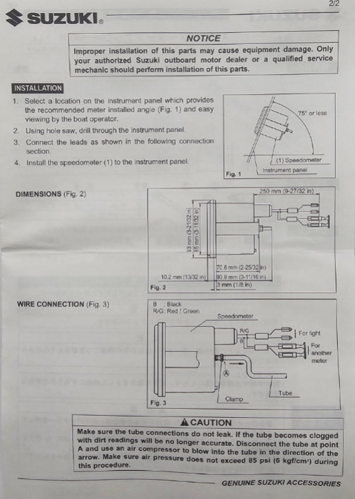 Bourbon-type black face speedometer with readings in M.P.H. and Km/h. Includes installation instructions and hardware. 3 3/8" diameter. Includes vinyl tubing, plus all installation instructions and hardware. Speedometer Sensor (Pitot Tube) may be needed.