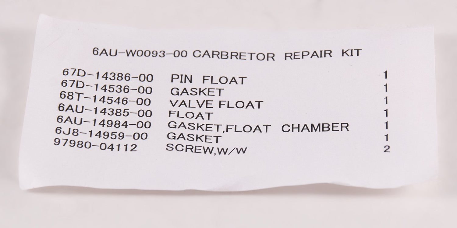 The Carburetor Repair Kit (SKU: 6AU-W0093-00-00) is a genuine Yamaha part, ensuring it meets the highest standards of quality and performance. This kit is perfect for addressing common carburetor issues, helping to maintain your outboard motor's peak performance. By choosing this authentic Yamaha repair kit, you can reduce fuel consumption and emissions, leading to a more eco-friendly boating experience while keeping your engine running smoothly and efficiently.