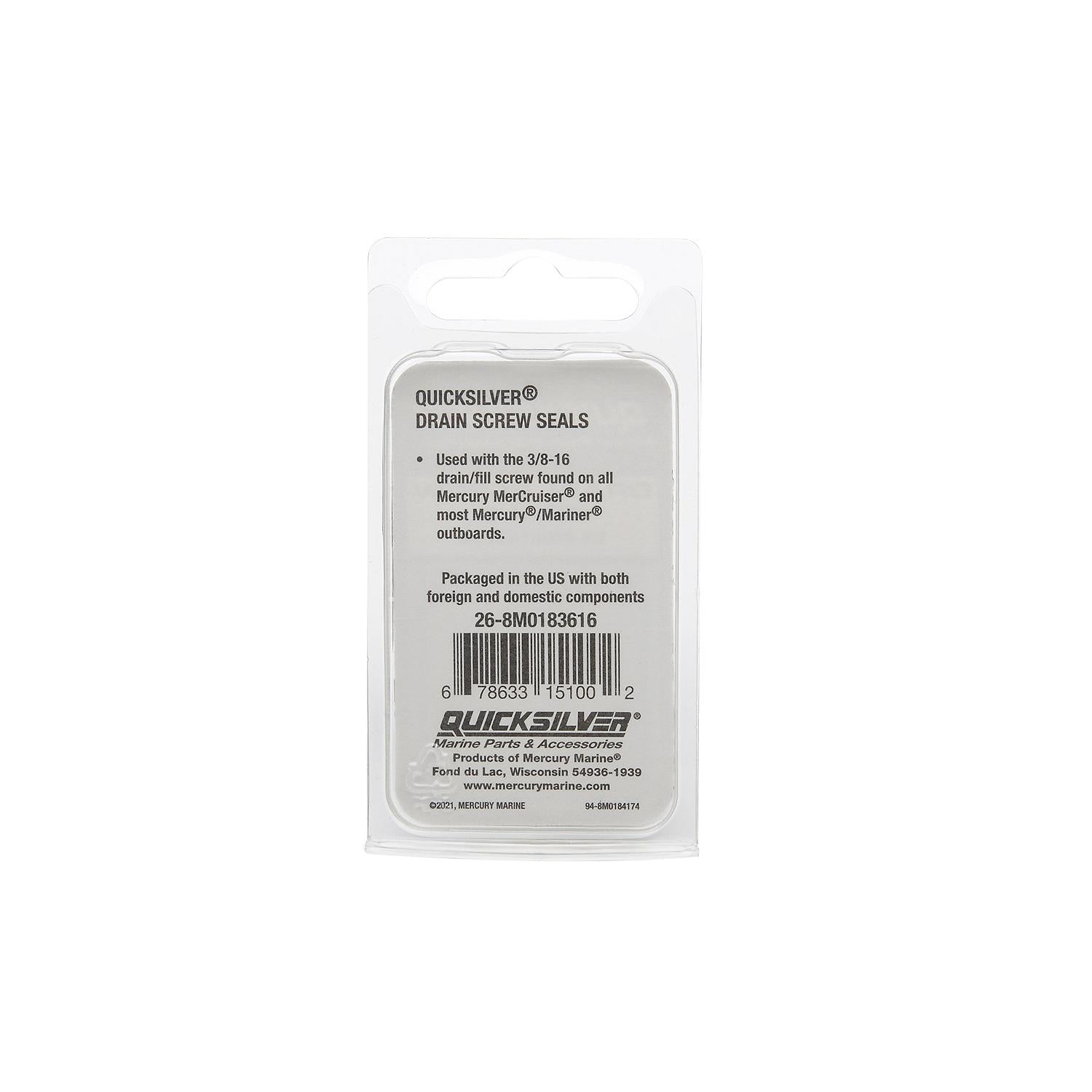 Mercury – Drain Screw Seals | Gear Case Components | Rubber-Coated Stainless Steel | 8M0183616 (Pack of 4)