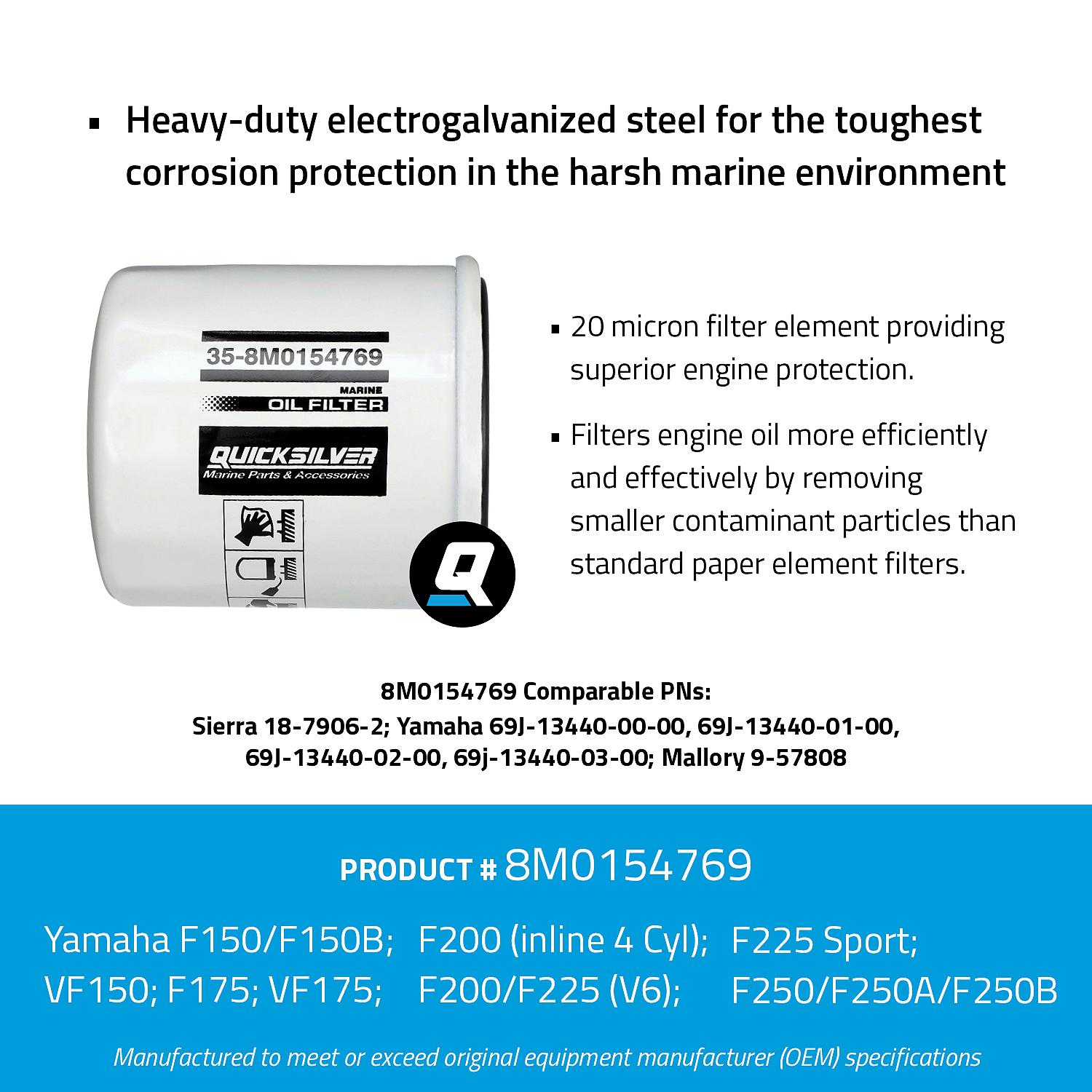 Mercury – 20 Micron Oil Filter | Marine Engine Protection Series | 8M0154769 is backordered and will ship as soon as it is back in stock.