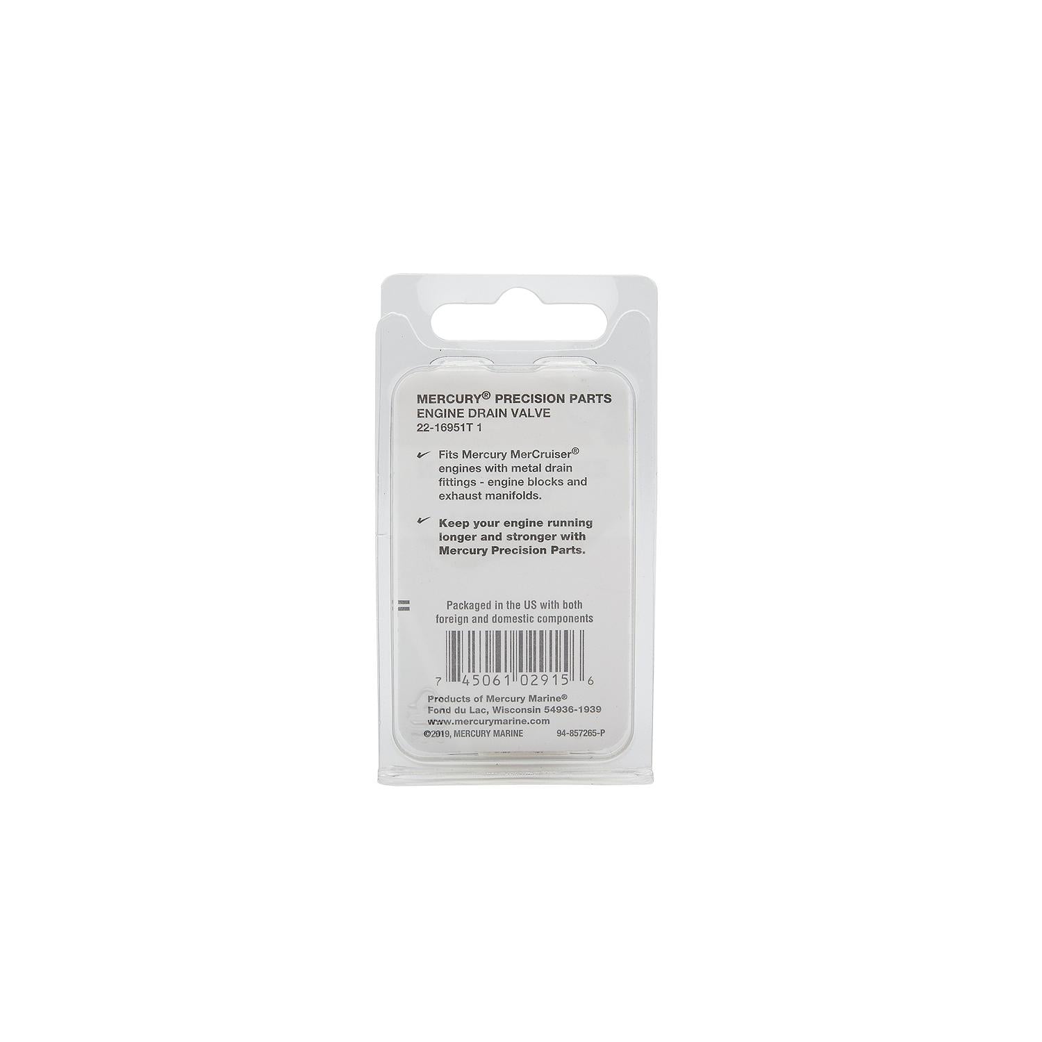 Not all brass plugs are created equal. Some aftermarket parts use lower-grade material or imprecise threads that don’t seal properly. The Mercury 16951T1 is a genuine OEM part, made to exact Mercury standards. It fits perfectly, resists corrosion, and provides the strength and reliability marine engines demand.